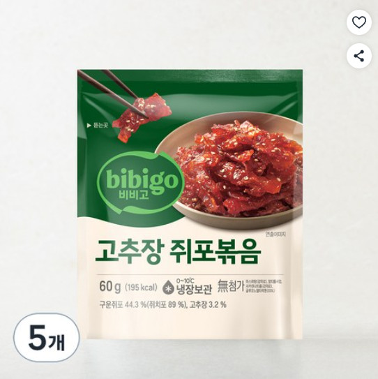 재고 7개 남음 / 비비고 고추장 쥐포볶음, 60g, 5개 75%