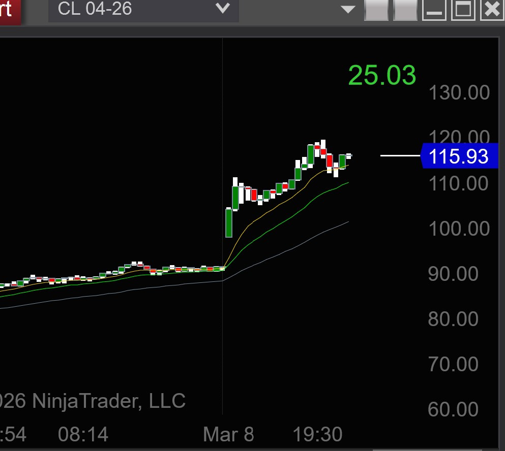 선물시장 개장하자마자 30달러 갭업으로 시작 현재 배럴당 115달러 거래중